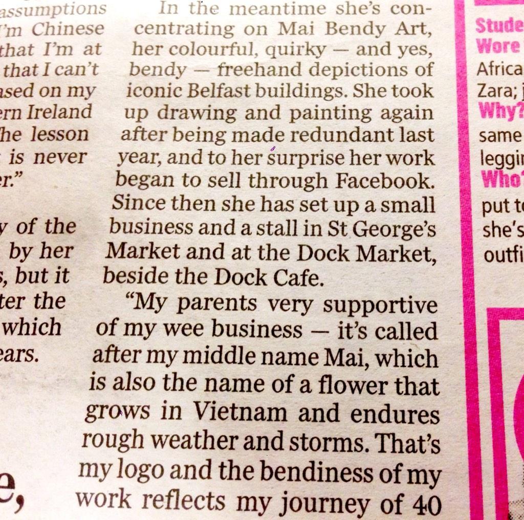 By the way, did you see Tanya, one of our Dock Market superstars, in the Belfast Telegraph during the week?