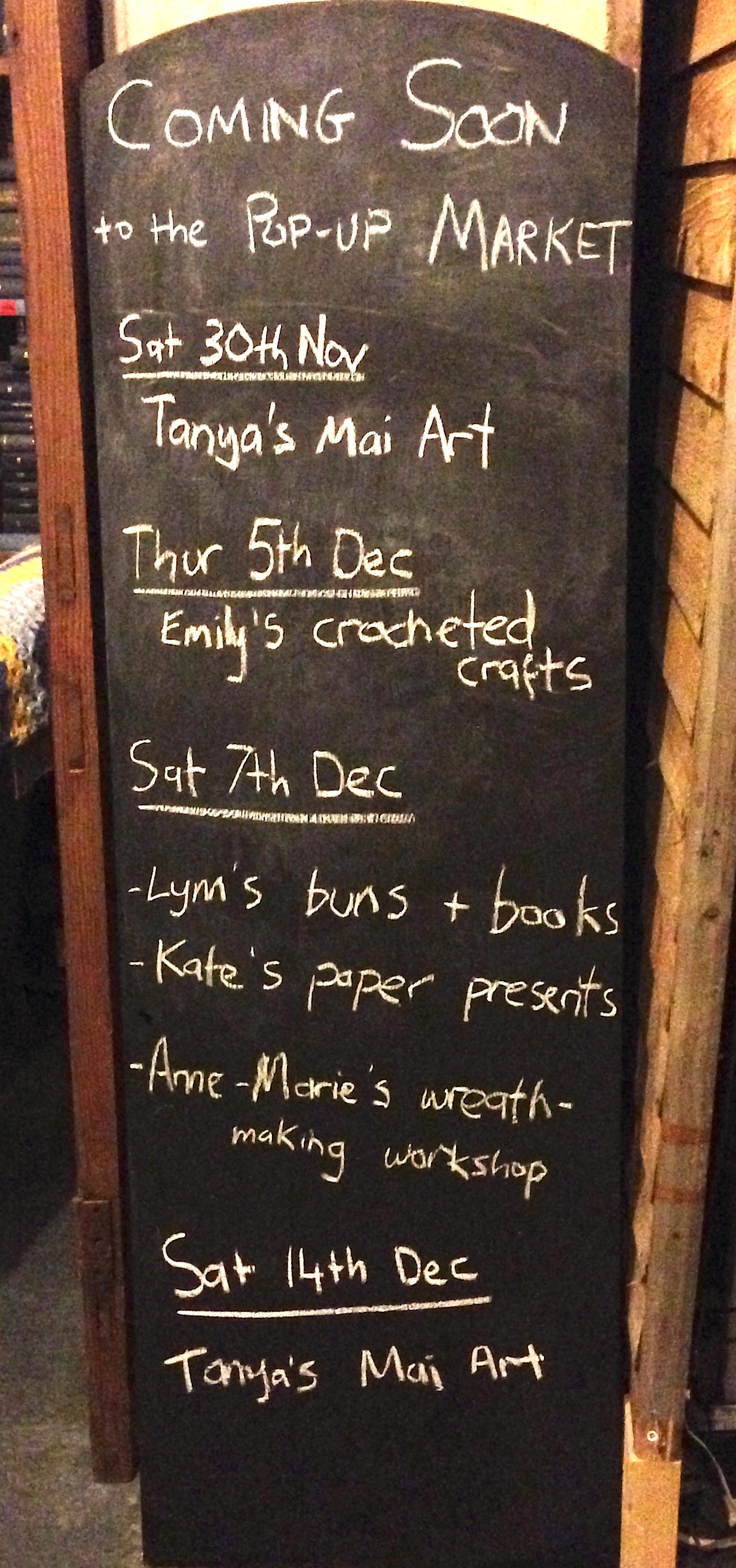 You might pick up the perfect gift at the pop-up market stall – it’s being used all the time to sell home-made arts, crafts, knits and other thingamabobs (the only rule for hiring the market stall is: If you make it, you can sell it!)