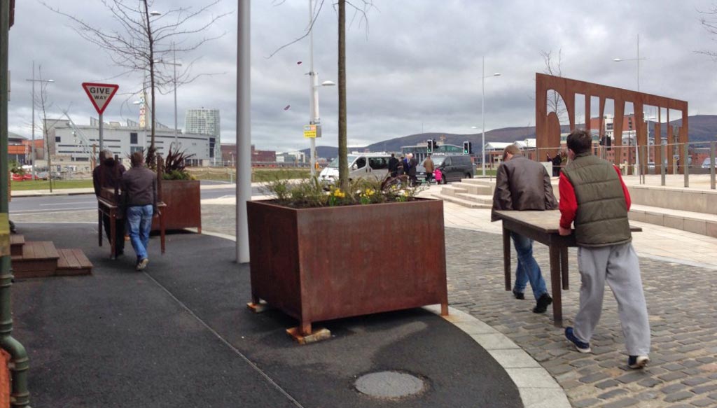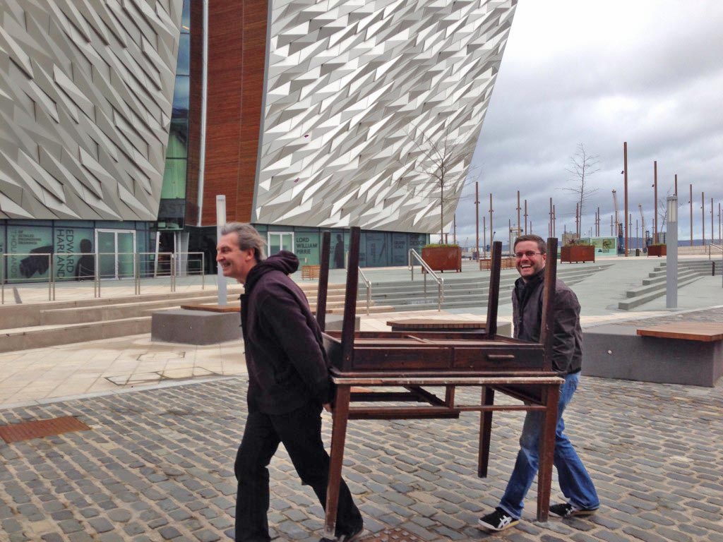 Hats off to the volunteers who are doing a  fantastic job cleaning, dismantling, repainting, fetching, carrying, drilling, hammering, and even staggering down the road from the Drawing Office with some newly-on-loan pieces of lovely shipyard heritage.  (Or at least they will be when we’ve cleaned the bird poo off.)
