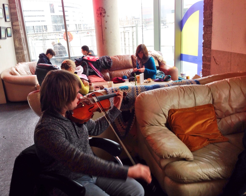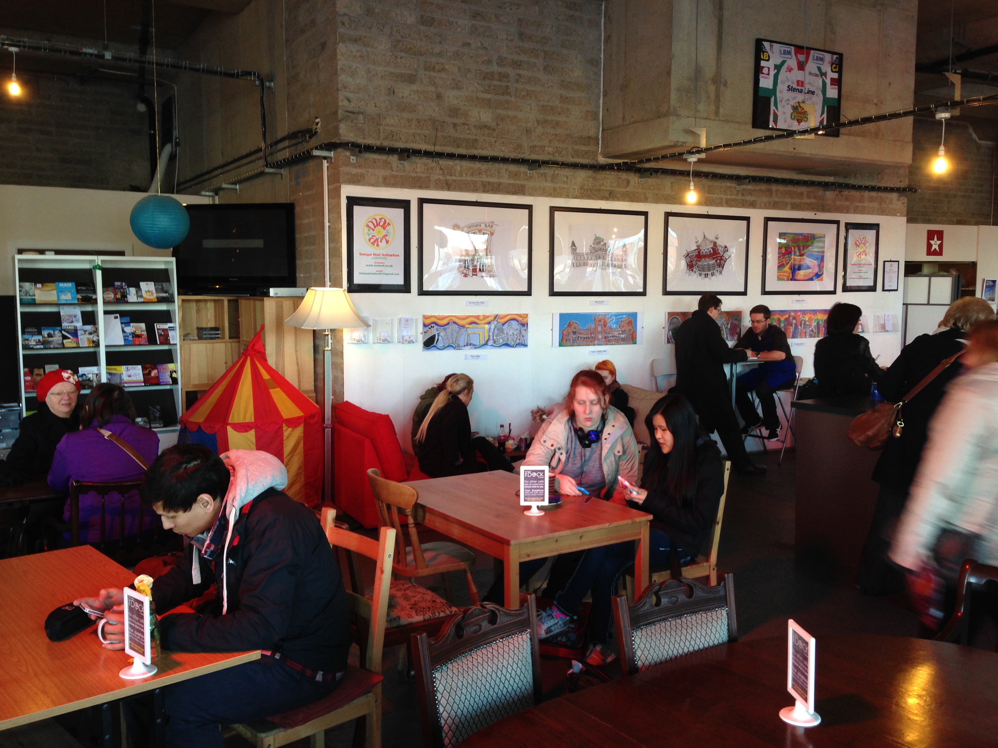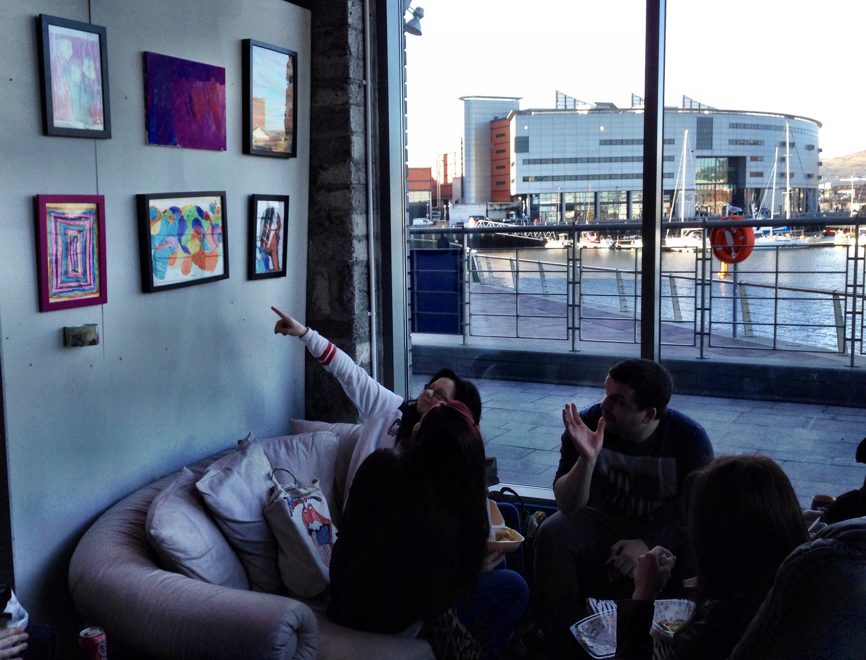 Like the art: loads of the artists on display in The Dock constantly update and refresh their work. This section – above the comfy couch with the best view in the Titanic Quarter – is kept up-to-date by Makiko, who brings the latest work from her L’Arche group ‘In Other Words’ – a project in which people with and without learning disabilities connect with each other by creating art.