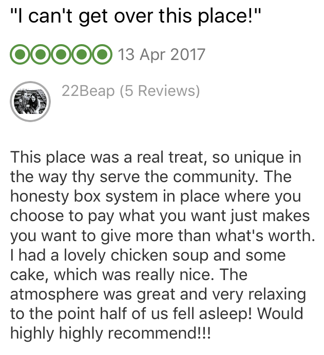 And look at the result… Dock Cafe is more welcoming, more cosy and more heavenly than ever – and every visitor always comments that it’s down to the cheery volunteers (who is the mystery “lovely older gentleman” – anyone want to claim that one!):